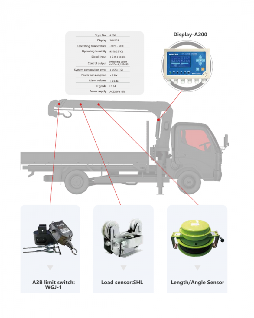 Model: WTL - A 200 - LMI for Foco CraneIndikator Beban Aman derek yang dipasang di crane, mengadopsi Layar LCD 5.5 inci, yang dapat menampilkan informasi seperti kaki, sudut, jangkauan kerja, berat angkat saat ini, dan status kait boom derek secara real-time. Pemasangan dan kalibrasi sistemnya sederhana, dan dapat dipasang serta dikalibrasi oleh teknisi profesional.